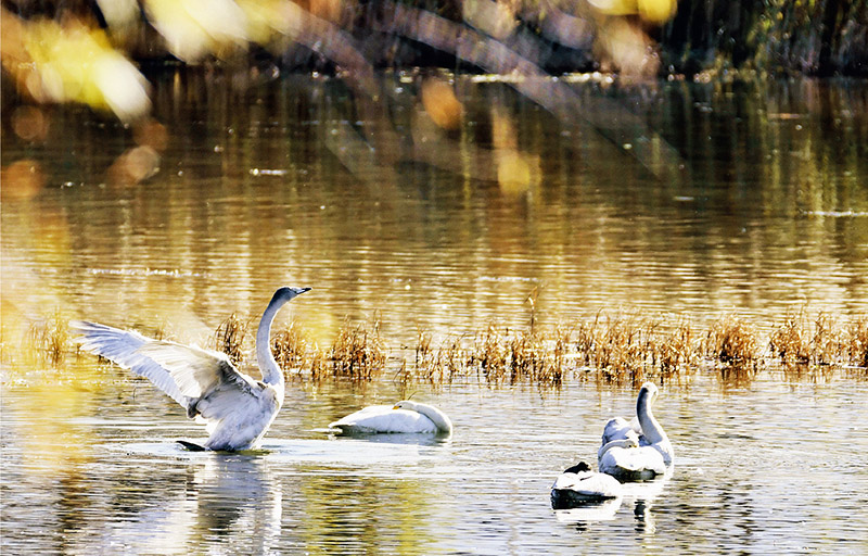 近年來,北京市水務(wù)局密云水庫管理部門大力開展以自然恢復(fù)為主、人工修復(fù)相結(jié)合的水生態(tài)保護(hù)與修復(fù)和生態(tài)環(huán)境治理,推進(jìn)山水林田湖草精細(xì)化管理工作,提高庫區(qū)生物多樣性豐富度,為動(dòng)植物提供了優(yōu)質(zhì)的生存環(huán)境,也提升了密云水庫的生態(tài)環(huán)境和水質(zhì)。圖為2022年11月15日,天鵝在密云水庫流域的清水河內(nèi)棲息覓食。 新華社記者 李欣/攝