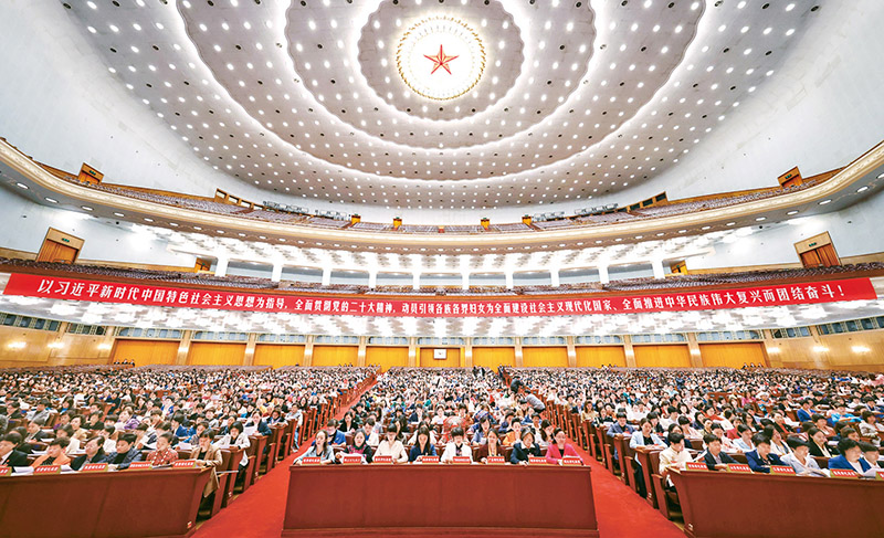 2023年10月26日上午,中國(guó)婦女第十三次全國(guó)代表大會(huì)在北京人民大會(huì)堂勝利閉幕。 新華社記者 張玉薇/攝