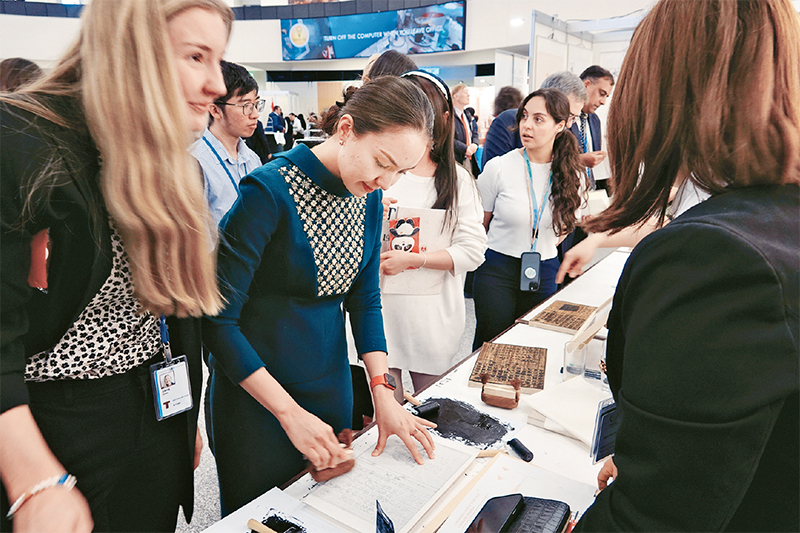 2023年5月2日,以“尼山傳千載 岱海連世界——全球文明倡議的生動(dòng)故事”為主題的2023維也納聯(lián)合國中文日系列活動(dòng)在奧地利維也納聯(lián)合國城舉辦。圖為參訪者在活動(dòng)上體驗(yàn)中國傳統(tǒng)拓印。 新華社發(fā) 王宙/攝