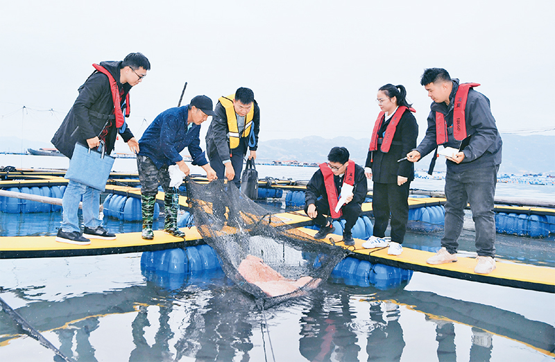 作為全國“楓橋式工作法”入選單位,福建省寧德市霞浦縣溪南鎮(zhèn)因地制宜打造新時(shí)代海上“楓橋經(jīng)驗(yàn)”,實(shí)現(xiàn)“小事不出排、大事不上岸、矛盾不上交”,有力維護(hù)海域平安和諧。圖為2023年11月14日,溪南鎮(zhèn)七星海上社區(qū)工作人員在轄區(qū)漁排走訪,了解海上養(yǎng)殖戶需求。 新華社記者 姜克紅/攝