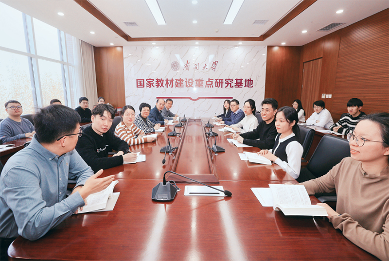 高等學(xué)校作為我國哲學(xué)社會科學(xué)“五路大軍”中的重要力量,理應(yīng)在中國特色哲學(xué)社會科學(xué)構(gòu)建中走在前列、干在實(shí)處,并為推動高水平哲學(xué)社會科學(xué)學(xué)術(shù)成果及時融入教材體系、課程體系、培養(yǎng)體系作出貢獻(xiàn)。圖為2023年12月5日,南開大學(xué)馬克思主義學(xué)院國家教材建設(shè)重點(diǎn)研究基地團(tuán)隊(duì)與學(xué)生進(jìn)行研討。 南開大學(xué)供圖
