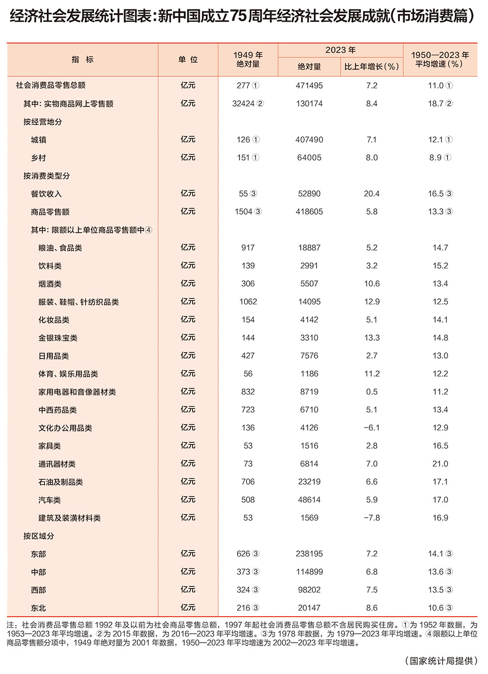 經(jīng)濟社會發(fā)展統(tǒng)計圖表:新中國成立75周年經(jīng)濟社會發(fā)展成就(市場消費篇)