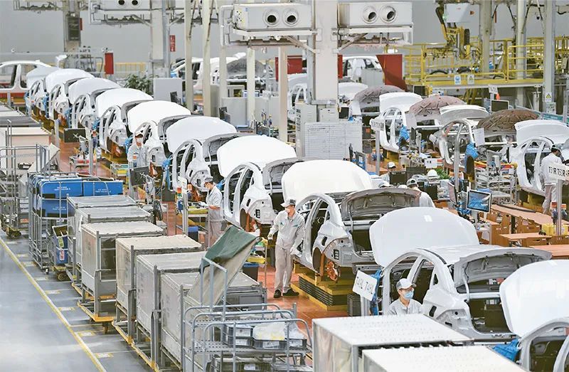 2023年4月12日,習(xí)近平總書記來到廣汽埃安新能源汽車股份有限公司考察。他走進企業(yè)展廳、總裝車間、電池生產(chǎn)車間等,了解企業(yè)突破關(guān)鍵核心技術(shù)和推動制造業(yè)高端化、智能化、綠色化等進展情況。圖為廣汽埃安新能源汽車股份有限公司總裝生產(chǎn)線。新華社記者 鄧華/攝