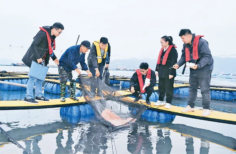 作為全國(guó)“楓橋式工作法”入選單位,福建省寧德市霞浦縣溪南鎮(zhèn)因地制宜打造新時(shí)代海上“楓橋經(jīng)驗(yàn)”,實(shí)現(xiàn)“小事不出排、大事不上岸、矛盾不上交”,有力維護(hù)海域平安和諧。圖為2023年11月14日,溪南鎮(zhèn)七星海上社區(qū)工作人員在轄區(qū)漁排走訪,了解海上養(yǎng)殖戶需求。 新華社記者 姜克紅/攝