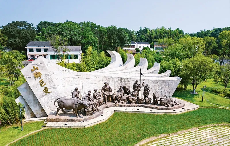 1955年秋,47歲的周立波整理行裝,從北京一路南下,舉家搬回老家湖南益陽清溪村。67年后,在這里,中國作家協(xié)會啟動了“新時代山鄉(xiāng)巨變創(chuàng)作計劃”和“新時代文學攀登計劃”兩項重大文學行動。圖為2022年8月1日拍攝的湖南省益陽市清溪村清溪廣場。新華社記者 陳思汗/攝
